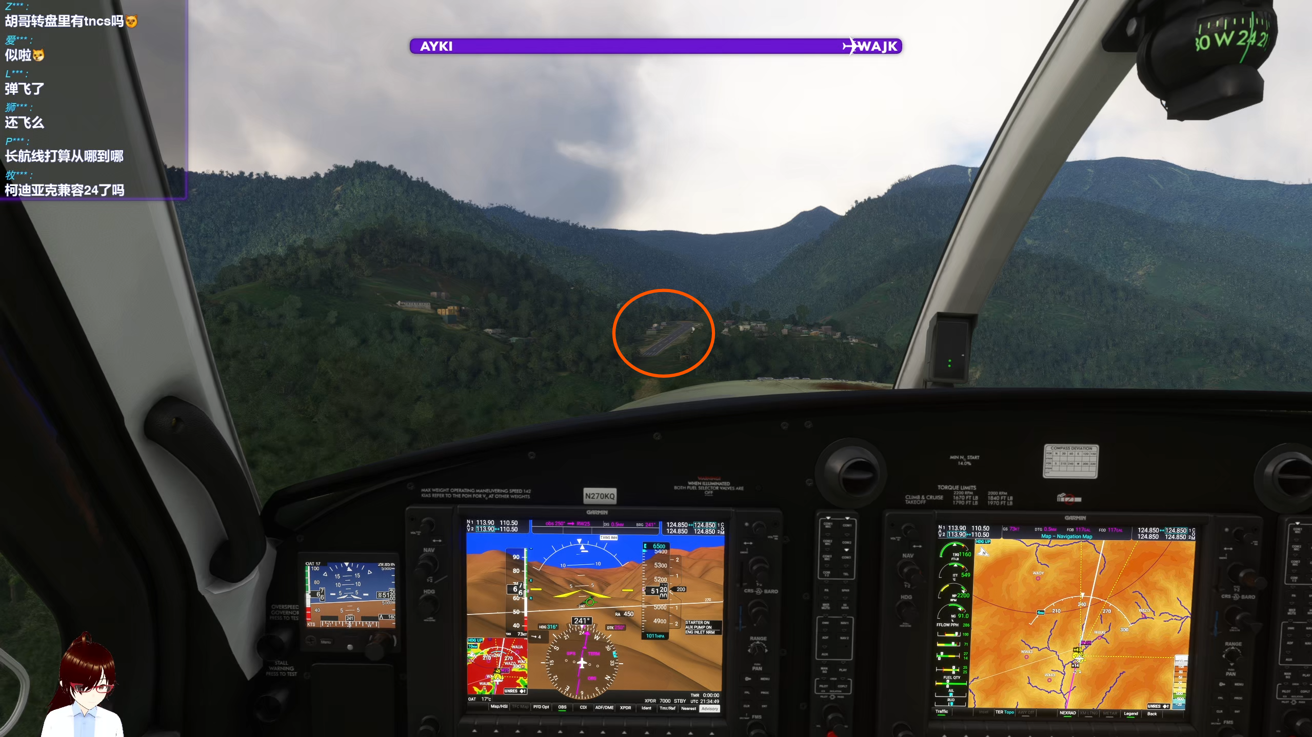 由于机场与周边山体的高度落差较大,建议先高空飞跃机场,之后沿东边的河谷向东飞,找到较为开阔的地带后,以此盘旋下降,然后向西沿河谷飞行,直至目视到机场。